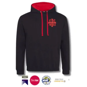 Hanorac SACRAL,Negru Rosu, Brodat Ortodox Religios cu Semnul Sfintei Cruci, IC XC NI KA, Bumbac Cerificat