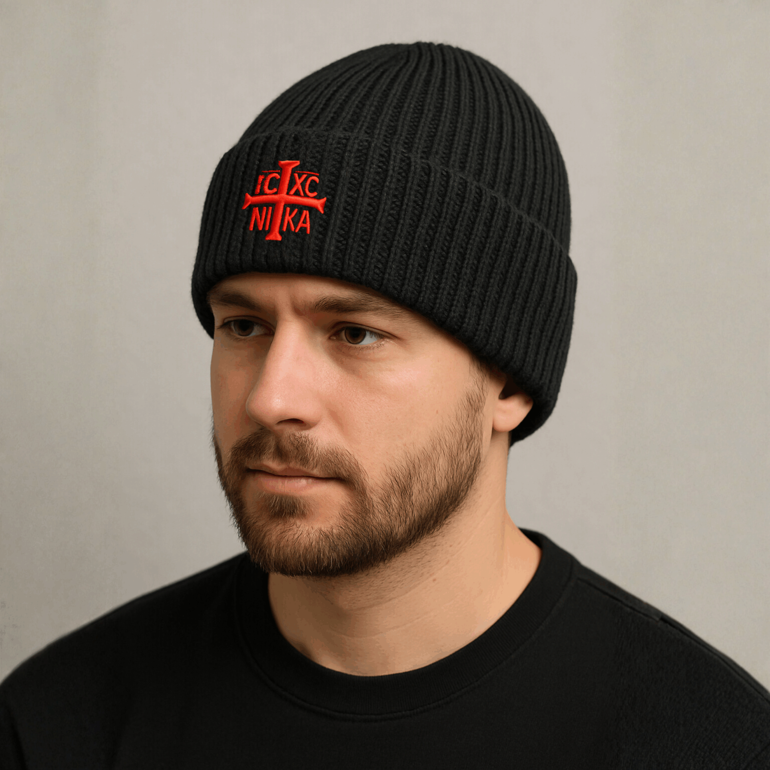 Caciula, Impletita SACRAL, Brodata Ortodox, Religioasa cu Sfanta Cruce, IC XC NI KA, Fabricat in Romania