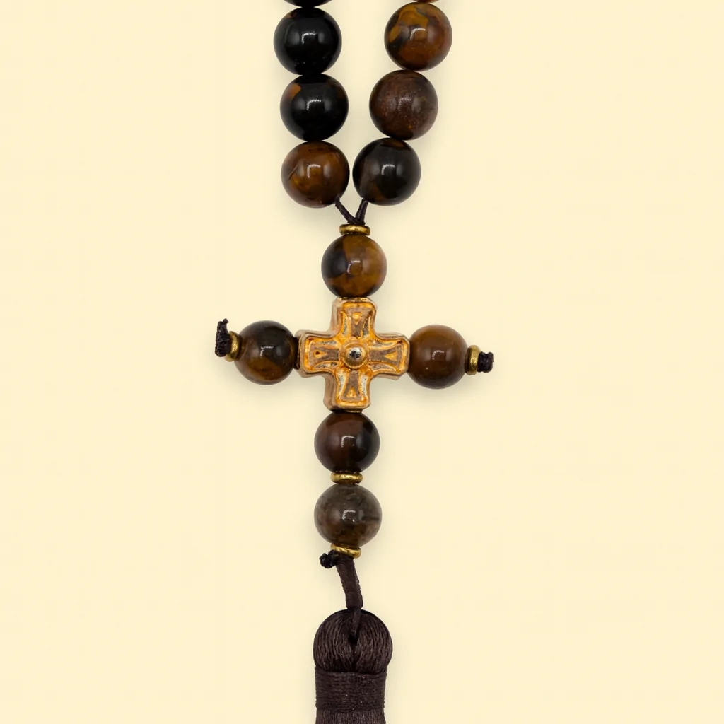 Lucrat manual cu migală și rânduială, acest metanier este compus din 30 de bile din piatră semiprețioasă naturală, alese cu grijă pentru calitate, rezistență și frumusețe autentică. Fiecare detaliu reflectă o lucrare plină de atenție și dăruire, menită să însoțească omul în rugăciune și liniște.