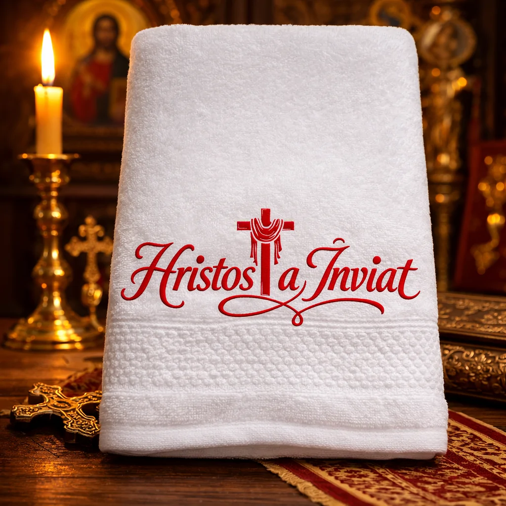Acest prosop pascal din bumbac 100%, cu dimensiunea de 50 × 90 cm, este creat special pentru momentul sfânt al Învierii Domnului. Moale, absorbant și de calitate superioară, este potrivit pentru a fi folosit la biserică în noaptea de Paști sau în casa creștinului.