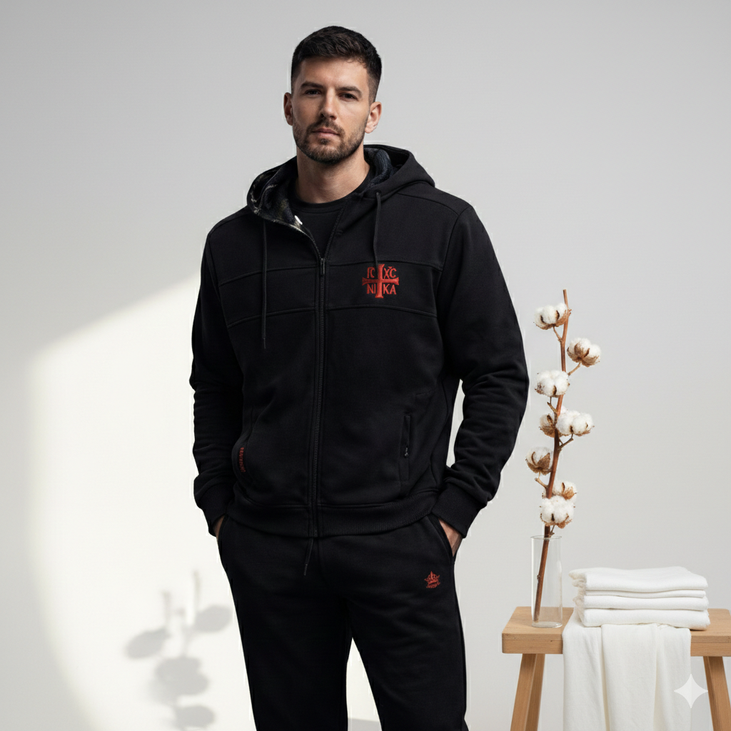 ✝️ Treningul este completat de broderia monogramă Iisus Hristos, realizată cu atenție și respect pentru detaliu. Nu este un simplu element vizual, ci un simbol de protecție 🛡️, purtat discret, ca o aducere-aminte a liniștii, a echilibrului și a sensului interior.