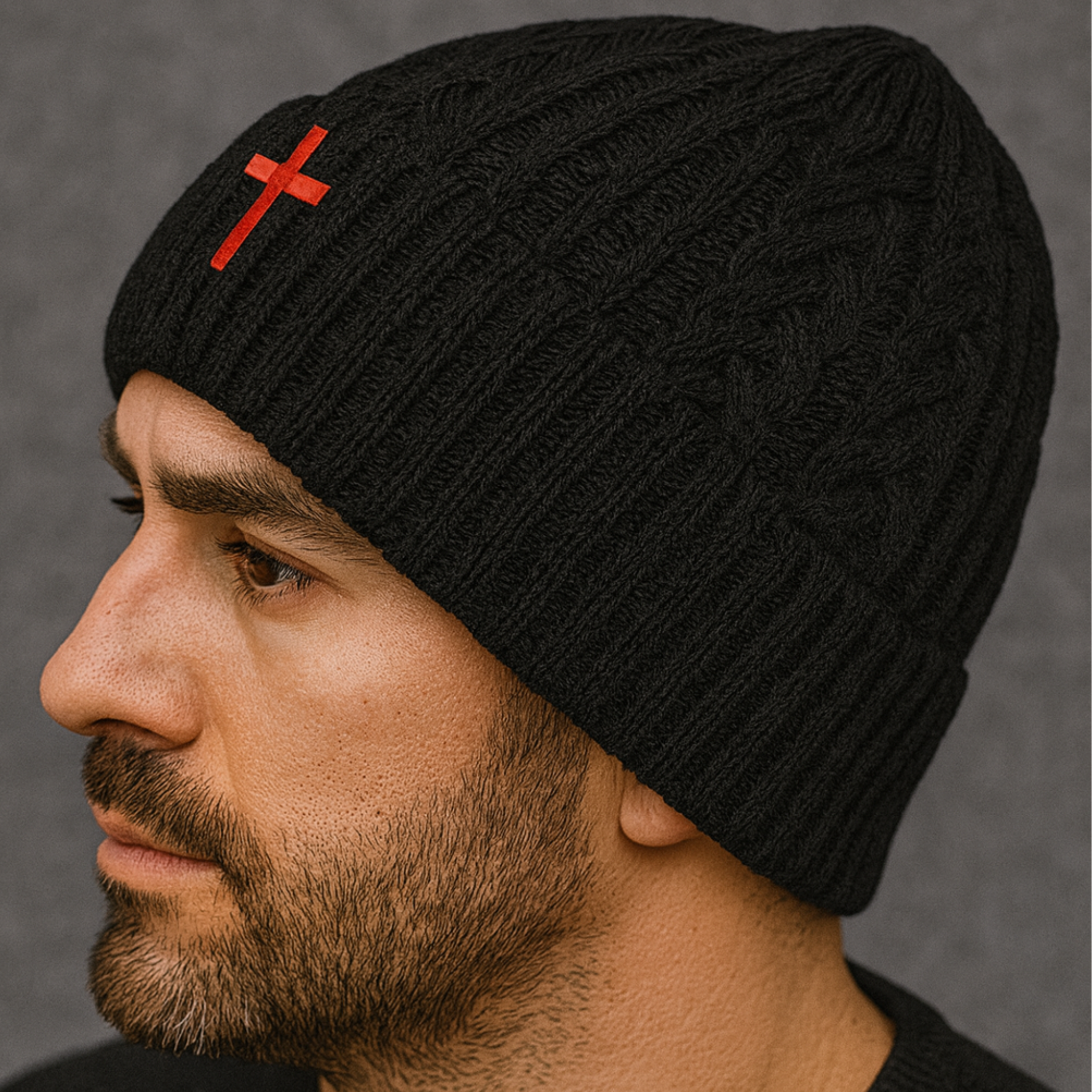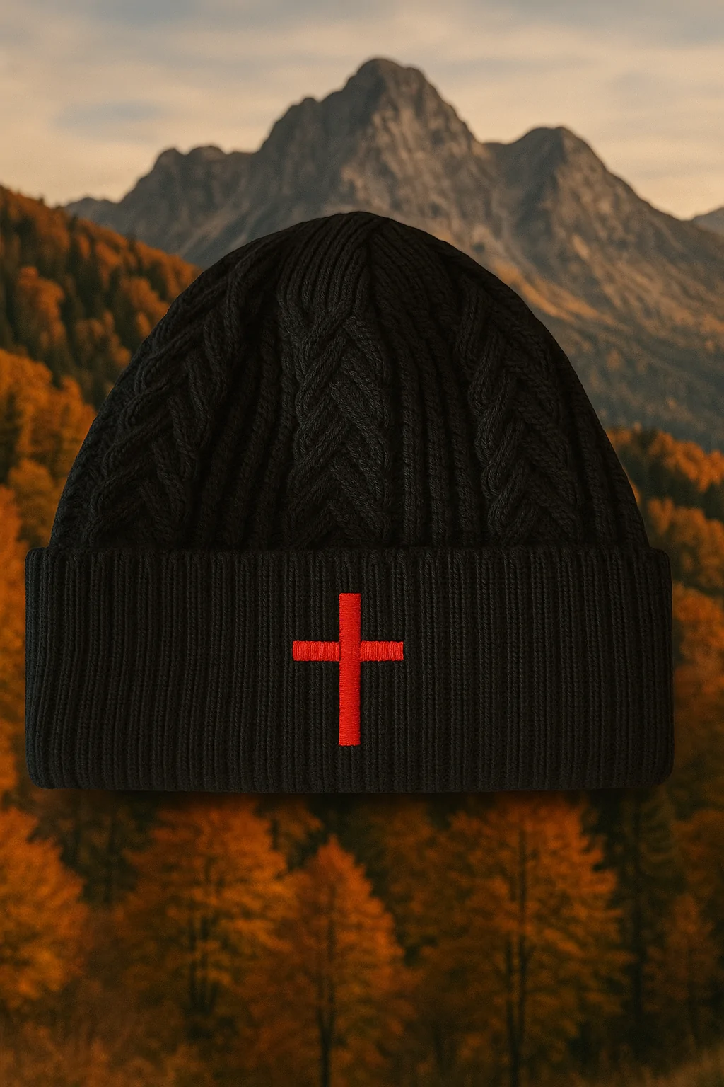 Caciula Impletita, SACRAL Brodata Sfanta Cruce, (tip Becali), Fabricat in Romania