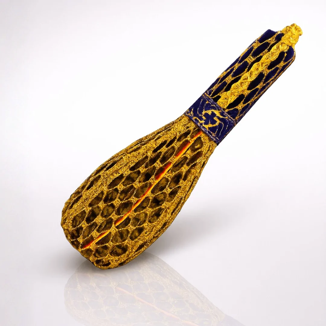 Sfeștocul este atent lucrat și îmbrăcat într-un ornament textil brodat cu fir auriu, care îi oferă un aspect solemn și potrivit pentru utilizarea liturgică. Datorită dimensiunii sale compacte, este ușor de manevrat, fiind ideal atât pentru slujbele din biserică, cât și pentru sfințirea caselor sau a altor spații.